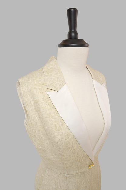 L’encolure et le galon sur les coutures latérales de cette robe l’apparente au smoking si chic et élégant. La fente sur le côté vous donne toute l’aisance pour bouger, danser.